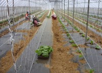 시설하우스 작두콩모종 옮겨심기